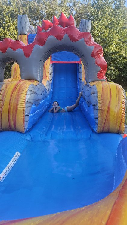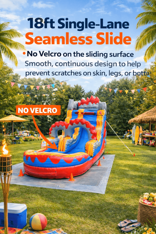 Identical to our 15ft Dual Lane Lava Surge! This patented seamless 18ft single lane is truly a gem! The wide slide and wide inflated pool landing with the seamless experience is sure to impress!