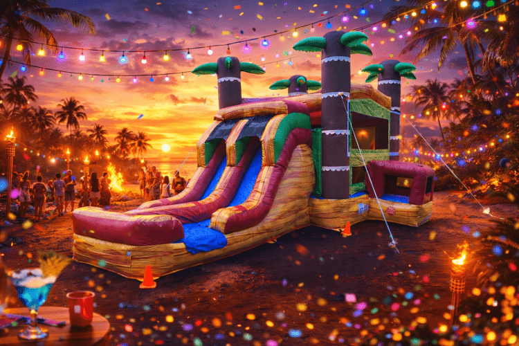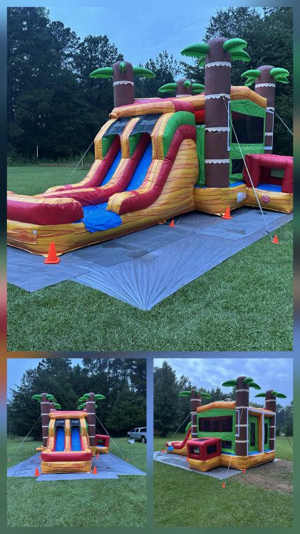Non-slip mats are added at NO extra cost, 50ft safety orange water hose, as well as safety yellow 50ft- 12g heavy-duty extension cord to power the fun! Additional water hoses/ ext. cords/ generators are available to rent as well (if power source is over 100ft away, a generator is required).